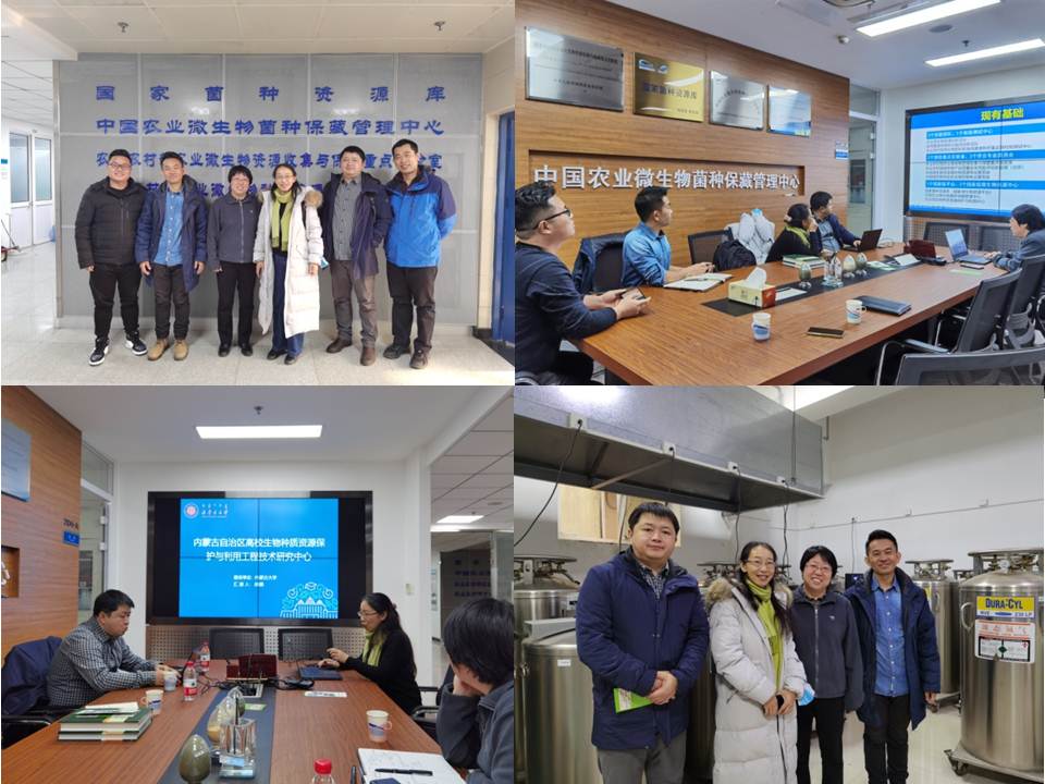 座谈会上,农业微生物资源团队的张晓霞研究员向调研组介绍了NMRC 和ACCC的发展历程、国家农业微生物种质资源库体系布局及“十四五”微生物种业振兴战略规划。食用菌遗传育种与栽培团队首席专家、国家食用菌产业技术体系遗传改良研究室主任黄晨阳研究员向调研组介绍了我国食用菌种业现状及菌根食用菌未来发展趋势。院长胡薇教授及DB中国旗舰官方网站微生物资源团队向两个团队分别介绍了“内蒙古大学北方草原带生物种质资源中心”建设情况及“内蒙古地区微生物种质资源”概况。胡薇院长和微生物团队希望在“内蒙古自治区高校生物种质资源保护与利用工程研究中心”顶层设计、内蒙古地区特色微生物种质资源库共建及共享、研究生联合培养以及“科技兴蒙”项目联合申报等方面积极开展合作。此次调研活动促进了双方的了解,同时在平台建设、研究生联合培养等方面达成初步合作意向。