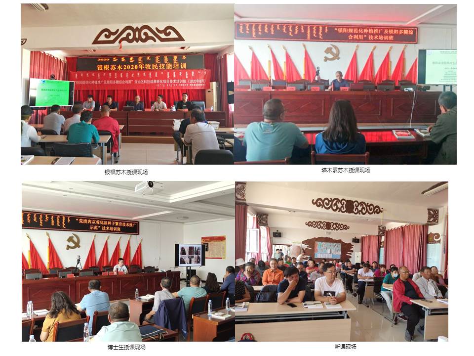阿拉善左旗银根苏木培训班由内蒙古大学和阿拉善盟左旗银根苏木人民政府共同举办;阿拉善右旗塔木素布拉格苏木培训班由内蒙古大学、阿拉善盟林业治沙研究所、宏魁苁蓉集团主办,阿拉善右旗塔木素人民政府承办。本次培训班得到了牧草与特色作物生物技术教育部重点实验室,内蒙古自治区中蒙药材规范化生产工程技术研究中心支持。