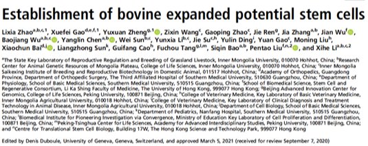 内蒙古大学、赛科星研究院李喜和教授团队研究成功牛多能性拓展的新型干细胞(bEPSCs)