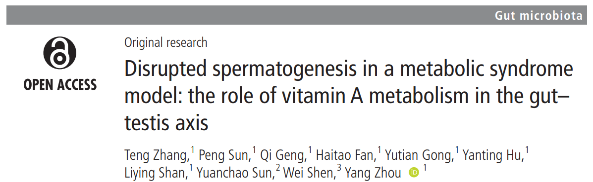 2021年1月27日,我校生命科学学院、省部共建草原家畜生殖调控与繁育国家重点实验室张滕研究员和周扬研究员团队以内蒙古大学为论文第一作者和通讯作者单位在国际顶级期刊《Gut》(中科院大类1区Top期刊;影响因子19.819)在线发表题为“Disrupted spermatogenesis in a metabolic syndrome model: the role of vitamin A metabolism in the gut-testis axis”的研究成果,该团队首次报道了在饮食诱导的代谢紊乱绵羊模型中,肠道菌群失调与胆汁酸水平降低影响了脂溶性维生素A在肠-睾轴的运输,睾丸中维生素A缺乏导致精子发生异常。