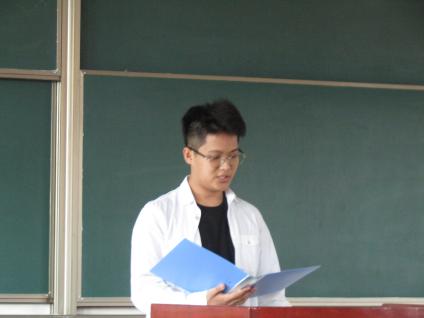首先由2016级本科生生物技术专业的孟繁一同学代表老生进行发言,在他的讲述中我们体会到了作为大一新生应有不断学习的意识和勇于探索的精神,以及他追寻理想“不破楼兰终不还”的斗志和激情。