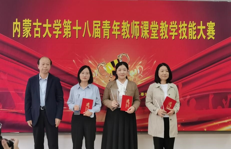 5月20日,内蒙古大学第十八届青年教师课堂教学技能大赛在北校区研究生楼举行。参赛的选手均为各学院选送的优秀青年教师。DB中国旗舰官方网站推选经过学院选拔的郭娇娇和王文颖两位青年教师参加理工科组比赛。比赛分为“教学设计”和“课堂教学”两部分。经过激烈的角逐,最终DB中国旗舰官方网站王文颖老师夺得本次大赛一等奖,郭娇娇老师取得三等奖的好成绩。