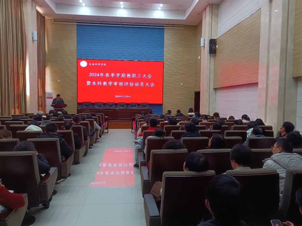 2月29日下午,生命科学学院在国重楼320会议室召开全院教职工大会暨本科教学审核评估动员大会,学院班子成员,全院教职工参加会议。会议由生命科学学院党委书记张慧荣主持。