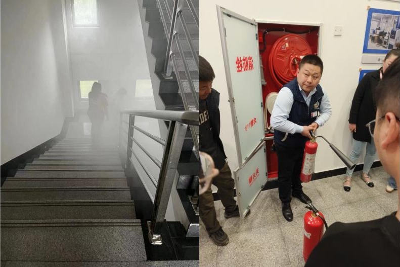 随后王涛教官为围绕如何排除消防隐患、消防三级责任、遇到火情如何第一时间灭火及逃生自救等做了介绍。讲座后进行了生科大楼逃生演练,最后,教官演示了楼层消防栓的使用。