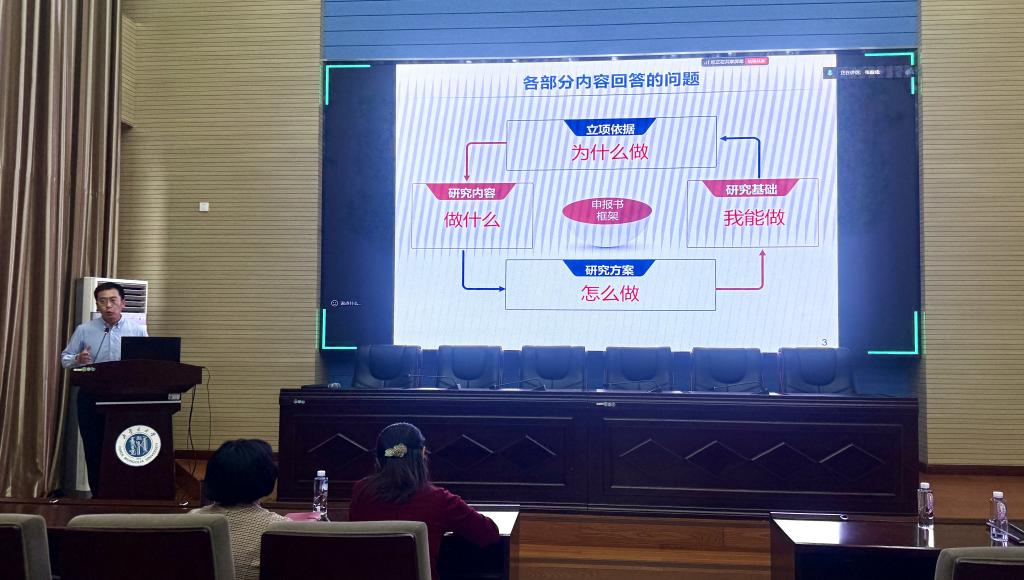 胡薇院长梳理了学科2020—2025年国家自然科学基金申报和立项等数据,报告了学科取得的进步和存在的短板,包括面上项目稳中有升,青年基金有待加强;同时明确了下一步的目标,包括重点项目继续争取,人才项目取得突破。