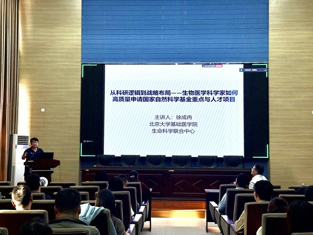 随后,会议特邀的北京大学-清华大学生命科学联合中心研究员、内大生物医学研究院特聘教授徐成冉作《从科研逻辑到战略布局——生物医学科学家如何高质量申请重点与人才项目》报告,结合本人主持多项国家级项目的实例,拆解科学问题凝练、科研战略布局、创新点呈现等关键环节。