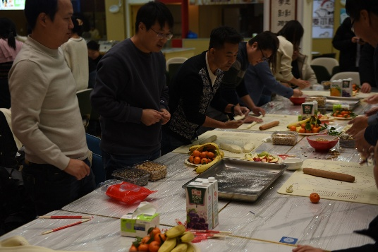 在包饺子环节中,教职工们以小组为单位,相互配合、默契协作,从擀皮、包馅到摆盘,各个环节欢声笑语不断。大家充分发挥创意,制作出形态多样、富有寓意的饺子作品,现场还特别设置了“最美创意饺子”评选,进一步激发了大家的参与热情与团队创造力。