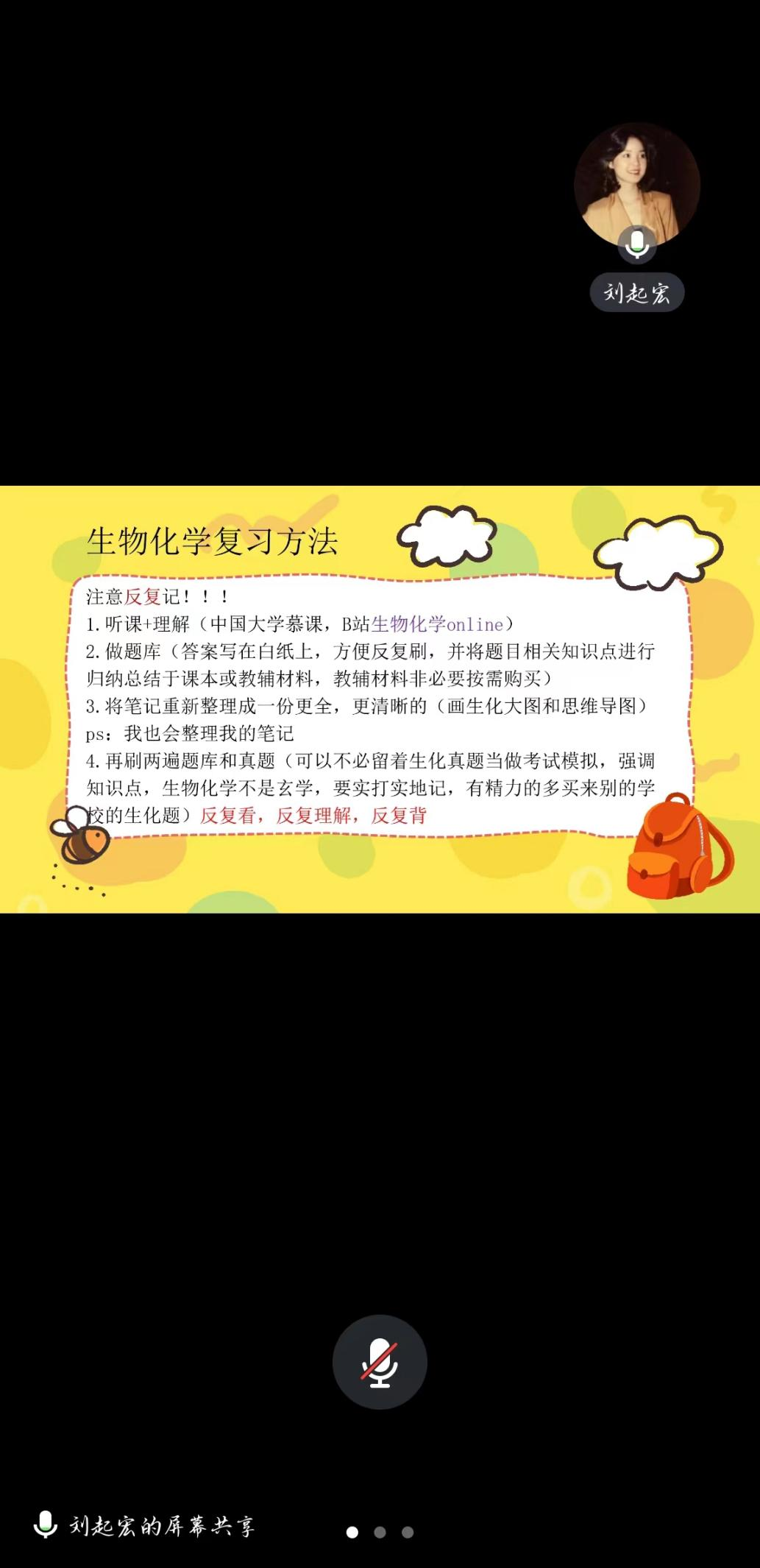 为帮助同学们理清考研新形势,进一步明确考研规划,生命科学学院于2023年11月18日召开了线上考研经验分享会。由成功上岸中国海洋大学的2023届食品质量与安全刘起宏学姐为大家分享考研经验。分享会由团委书记兼学工办主任季晓岚老师主持。