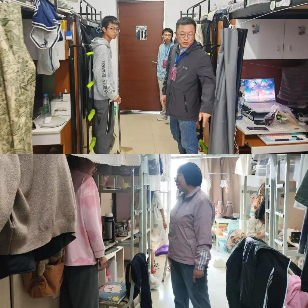 张慧荣与徐军分别深入男女生宿舍与同学们交流,提高同学们的安全防范意识,强调假期离留校时注意消防和出行安全,严禁使用大功率电器,离校时务必将电源等全部关闭,针对检查中发现的问题要求现场整改。同时,对同学们的学习、生活进行进一步了解。